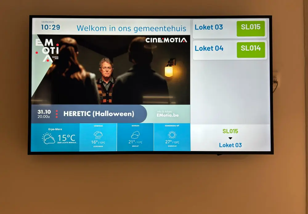Pour tous les sites de la police de Bruxelles, nous avond fourni une solution d'affichage dynamique combiné avec un outil de ticketing.